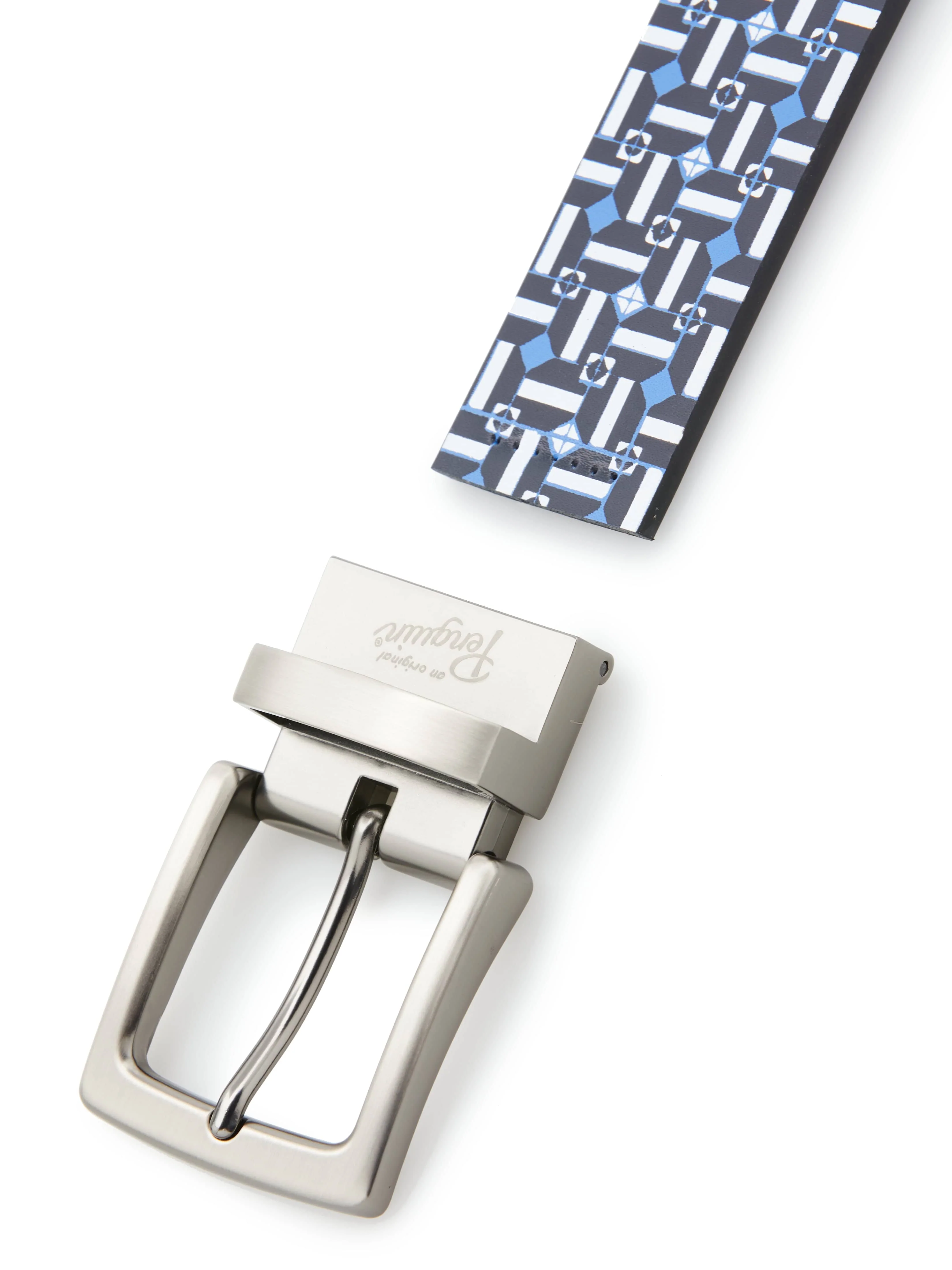 This Original Penguin men's reversible belt is a versatile accessory for any wardrobe. This reversible leather belt showcases a unique micro-pinball print on one side while the other offers a solid, classic look, so you can wear this belt for a variety of occasions. Made from 100% genuine leather, this men's micro print belt is not only a statement of style, but also a testament to quality and durability for lasting wear.