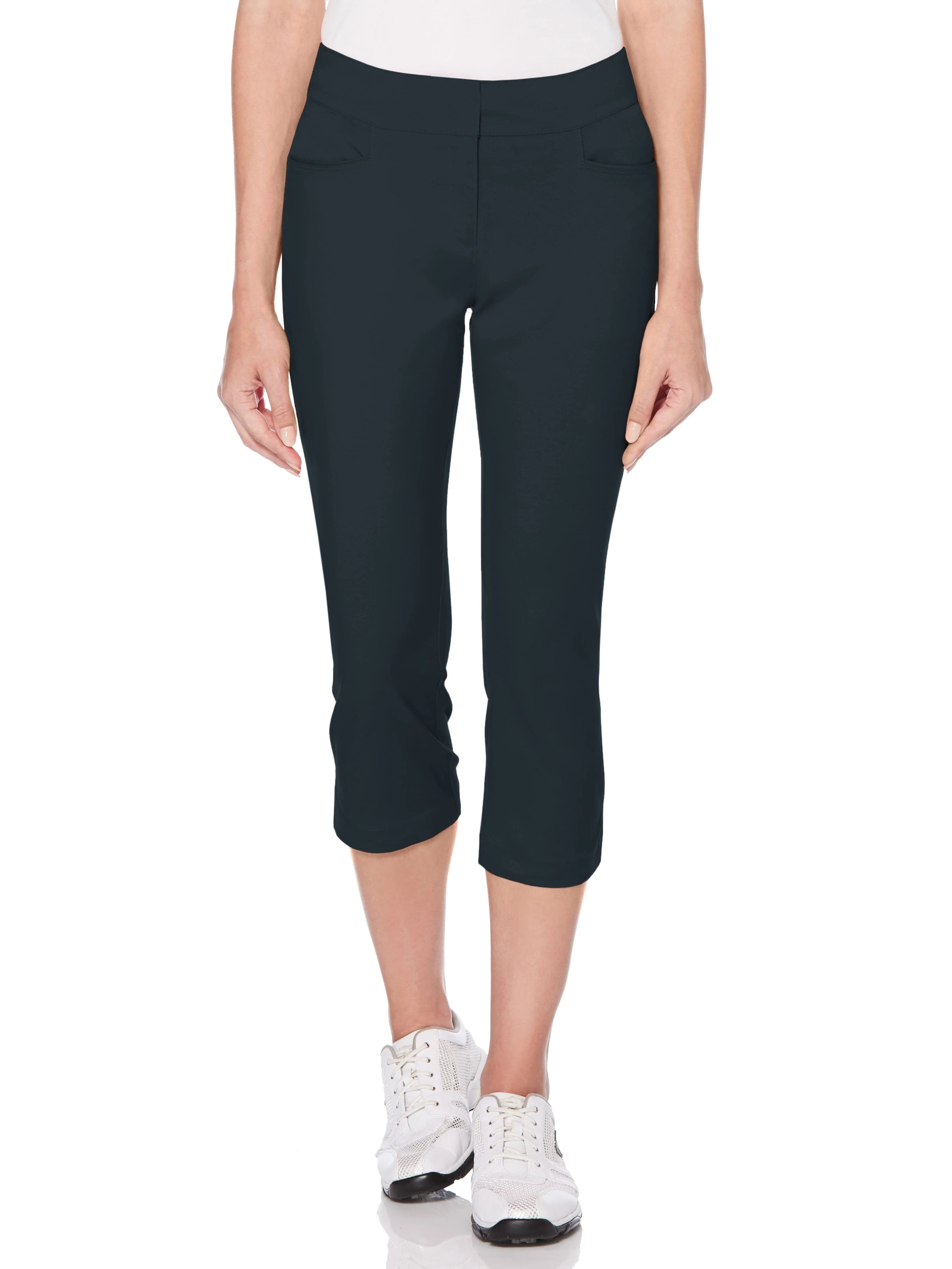 Our PGA TOUR women's woven capri is a wardrobe basic that you can mix and match with anything. The lightweight twill fabric features stretch for a comfortable fit at the waist and all over. Moisture-wicking technology keeps you cool and dry while sun protection helps block out damaging UV rays. Get more flexibility and versatility with this performance capri that looks great on and off the course.